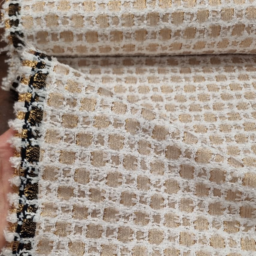 Tessuto made in Italy ideale per la realizzazione di giacche, abiti, gonne, pantaloncini, gilet.
